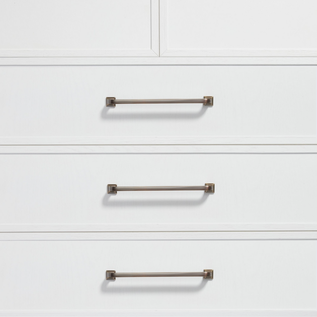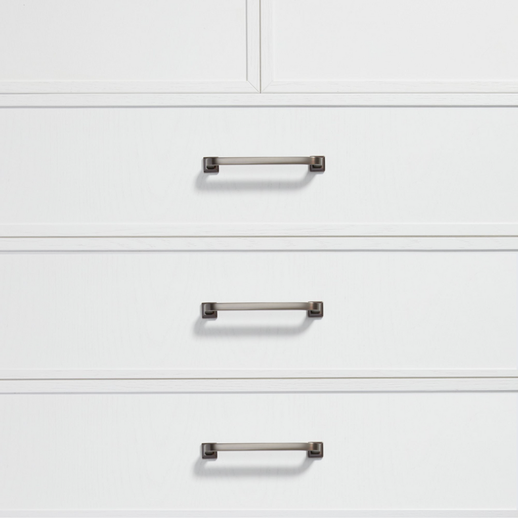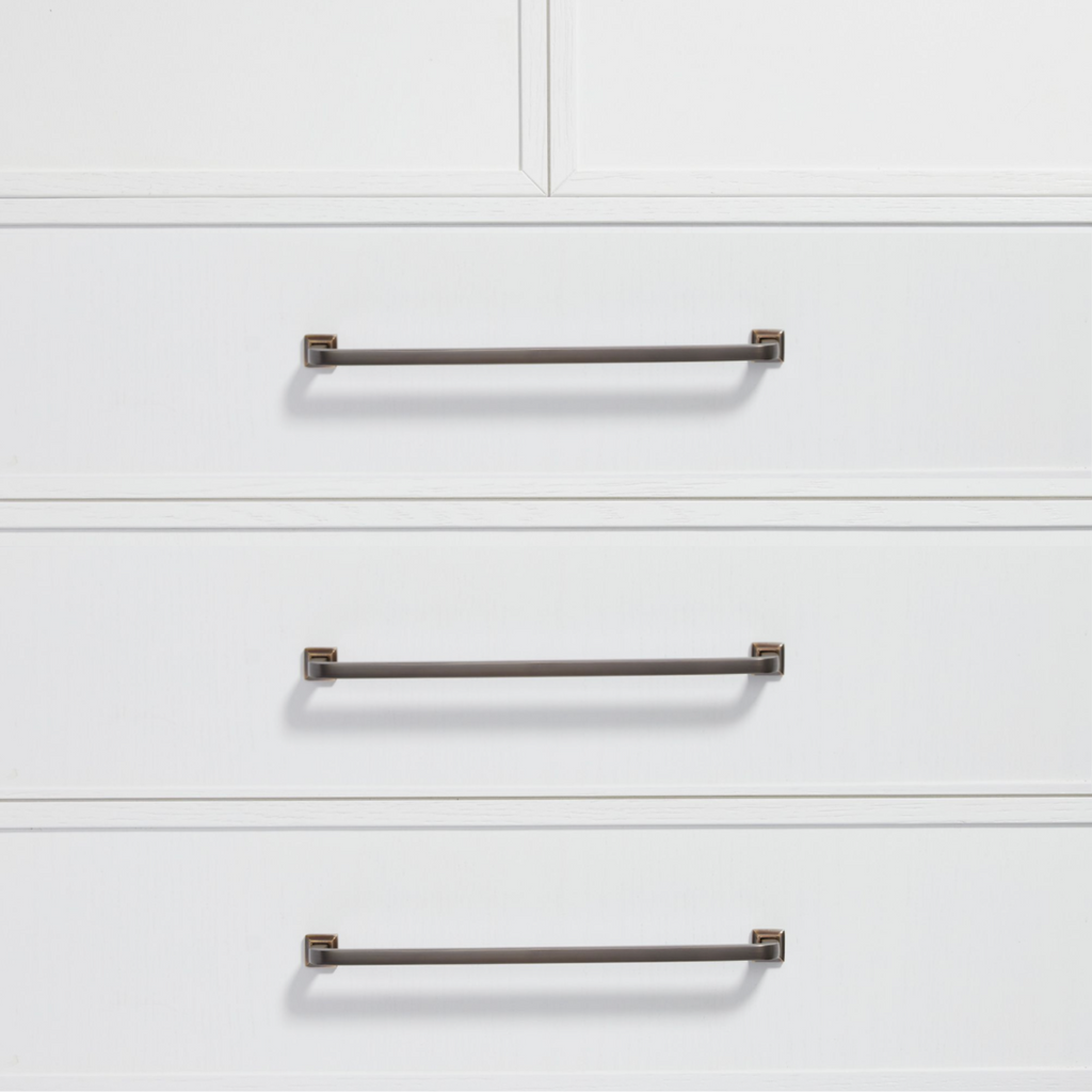 With smooth lines, a simple design, and removable square rosette feet, the Bronte handle is versatile enough to complement both traditional and contemporary homes. Whether you're updating a classic space or modernising your home, these handles add a refined touch of luxury to any cabinetry.
