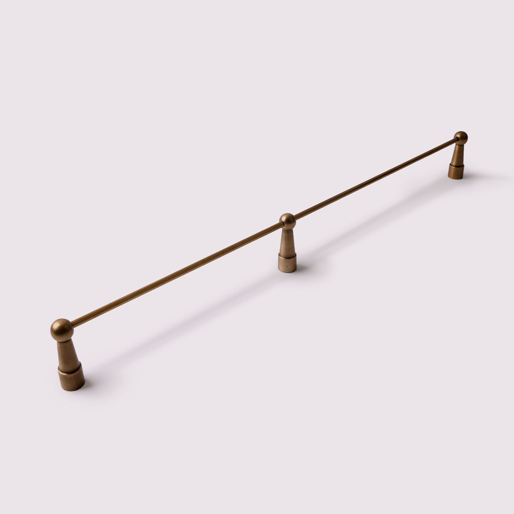 Designed off the shape of the South West Rocks lighthouse on Australia’s east coast, these gallery rails are designed to be installed on top of a shelf to stop items sliding off it. Made of solid brass, these gallery rails are able to be adjusted to any length shelf for a custom fit.
