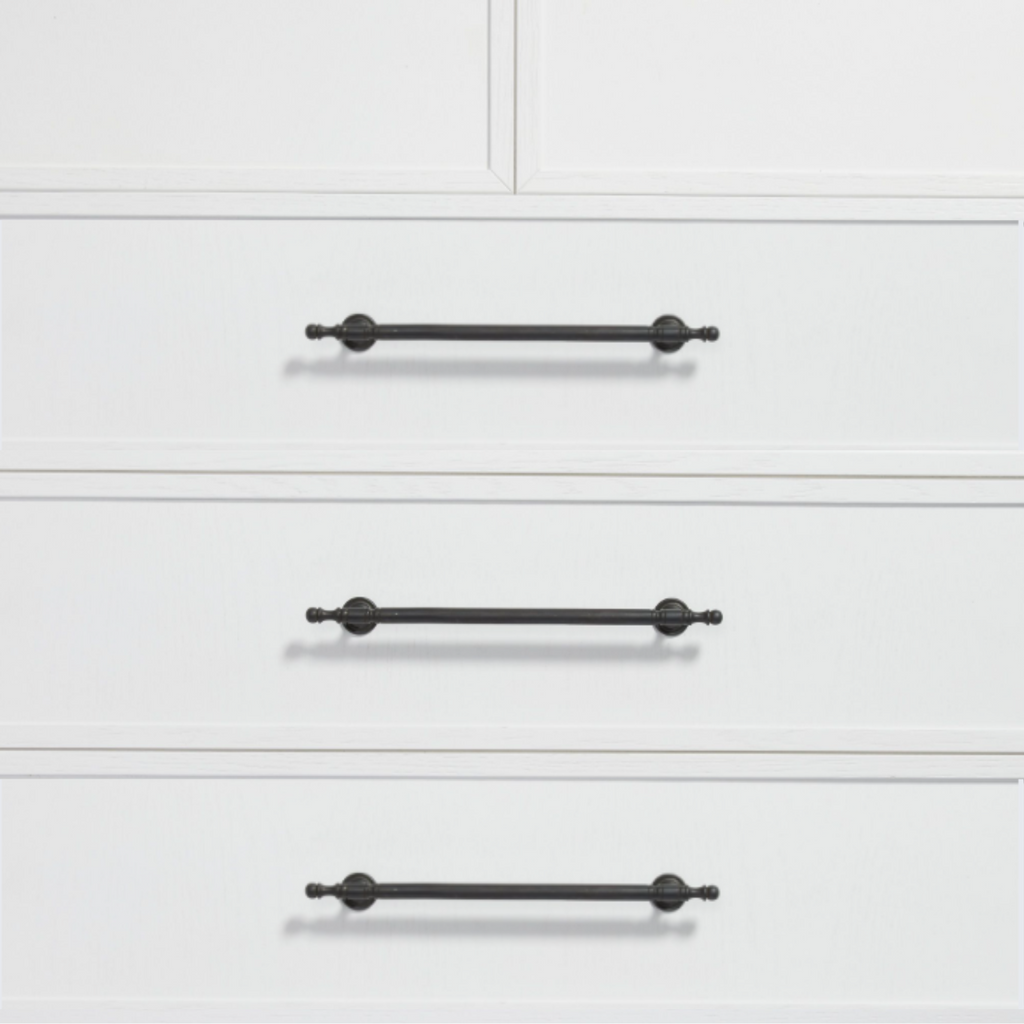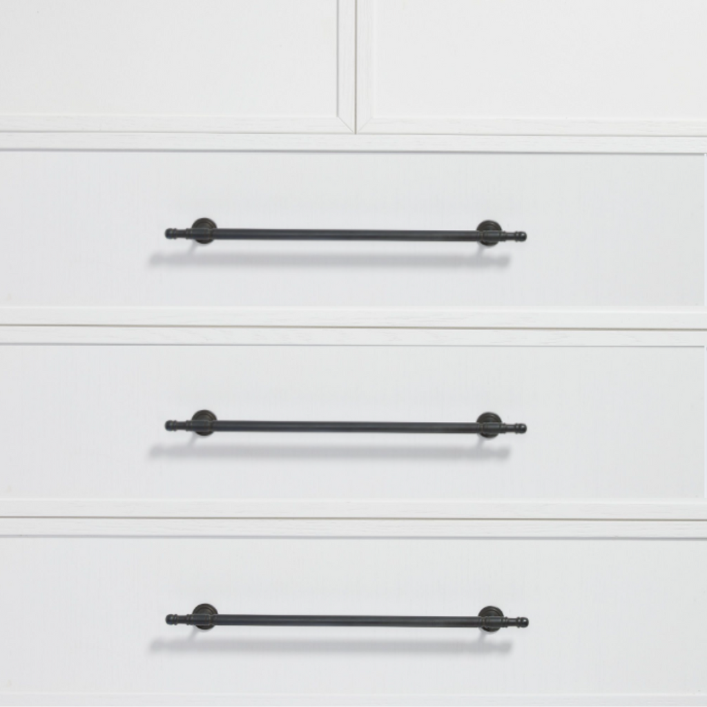 Inspired by the timeless elegance of French provincial design, these handles bring a touch of classic charm to your kitchen and bathroom. Crafted from solid brass, they feature fine rounded detailing on the ends and are designed to patina beautifully over time.