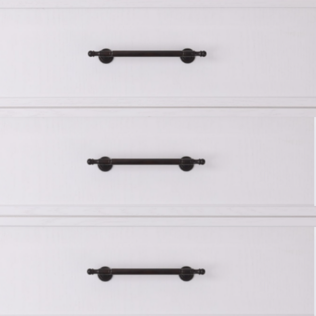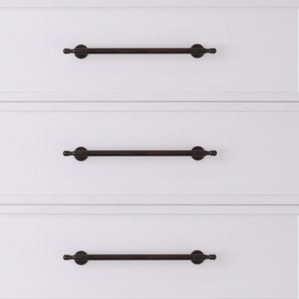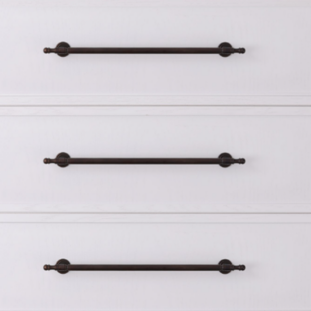 Inspired by the timeless elegance of French provincial design, these handles bring a touch of classic charm to your kitchen and bathroom. Crafted from solid brass, they feature fine rounded detailing on the ends and are designed to patina beautifully over time.