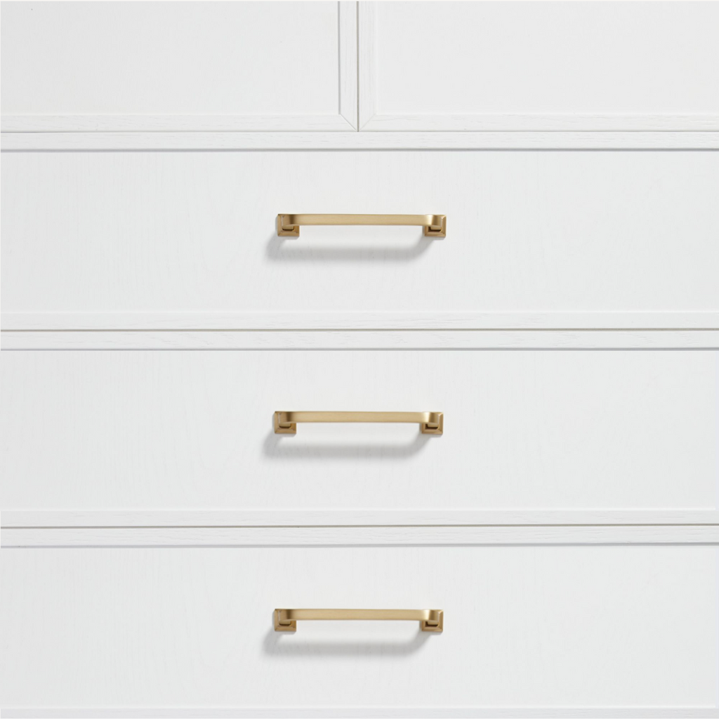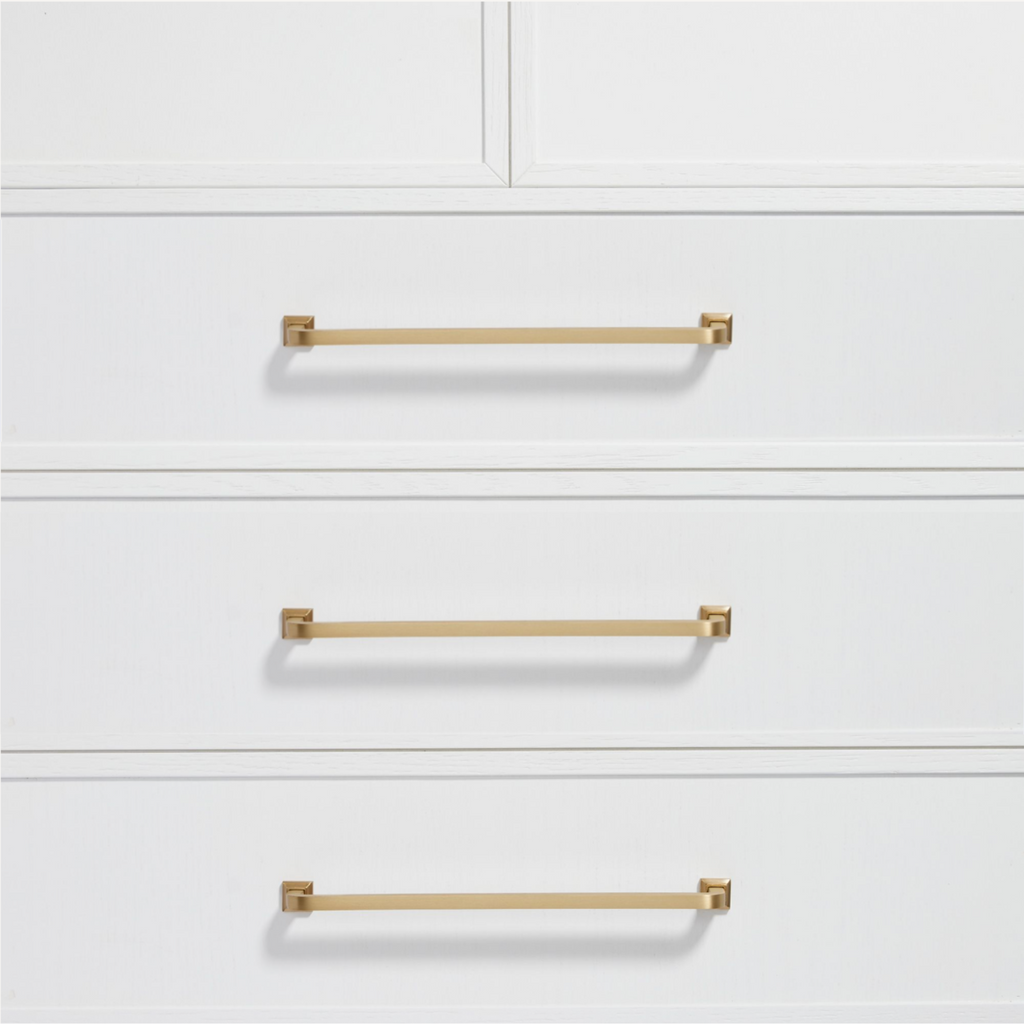 With smooth lines, a simple design, and removable square rosette feet, the Bronte handle is versatile enough to complement both traditional and contemporary homes. Whether you're updating a classic space or modernising your home, these handles add a refined touch of luxury to any cabinetry.