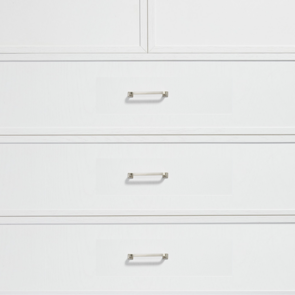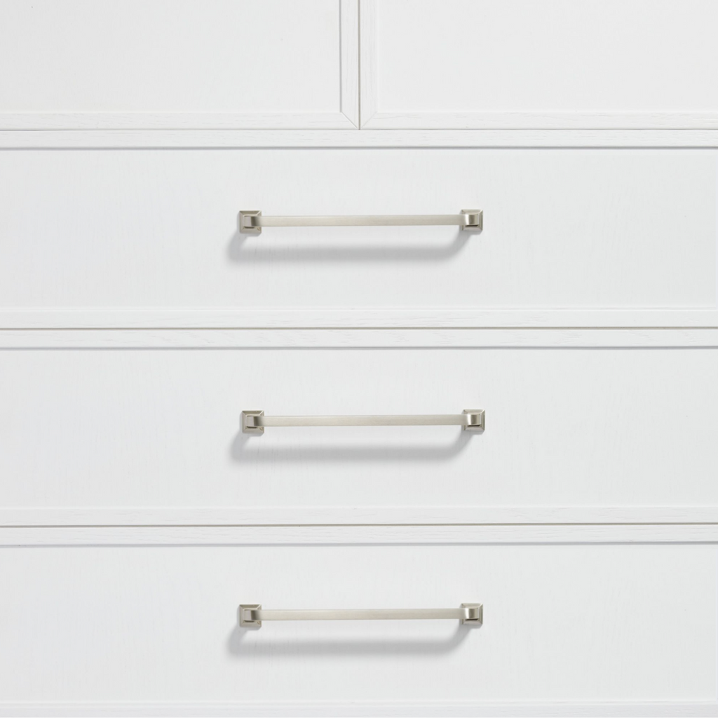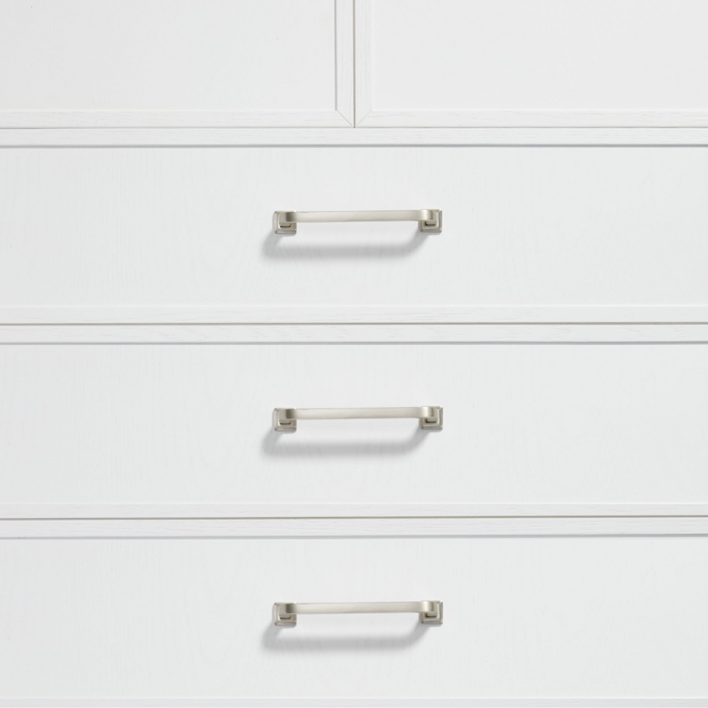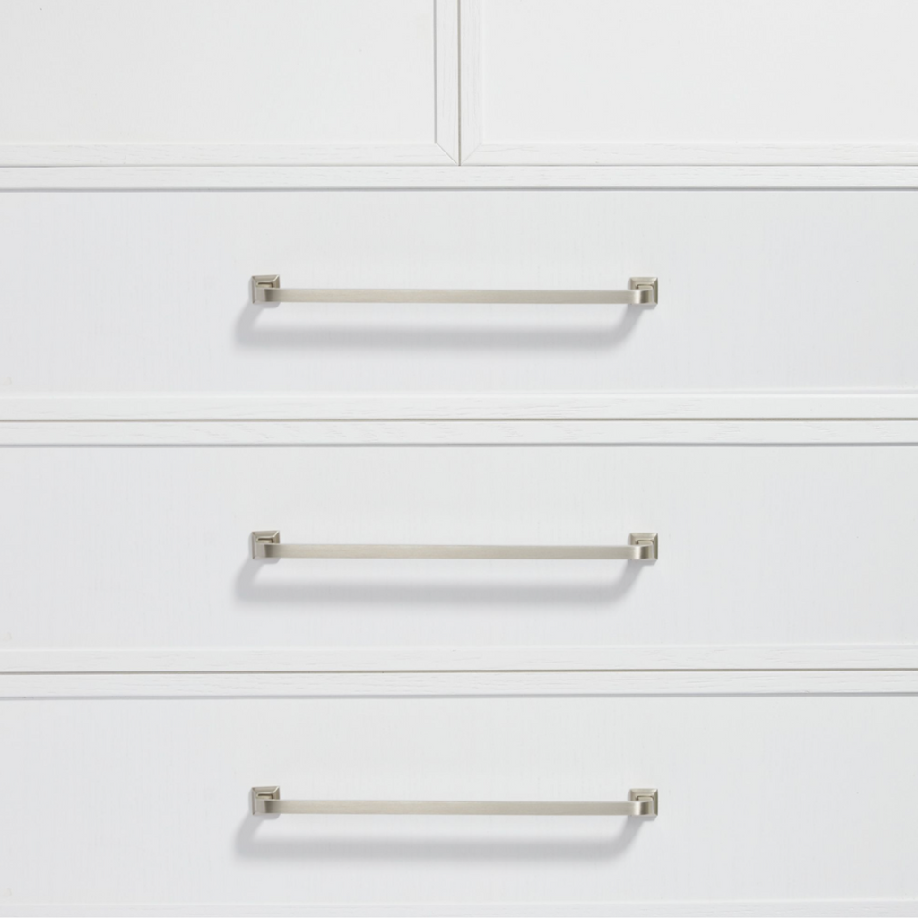 With smooth lines, a simple design, and removable square rosette feet, the Bronte handle is versatile enough to complement both traditional and contemporary homes. Whether you're updating a classic space or modernising your home, these handles add a refined touch of luxury to any cabinetry.