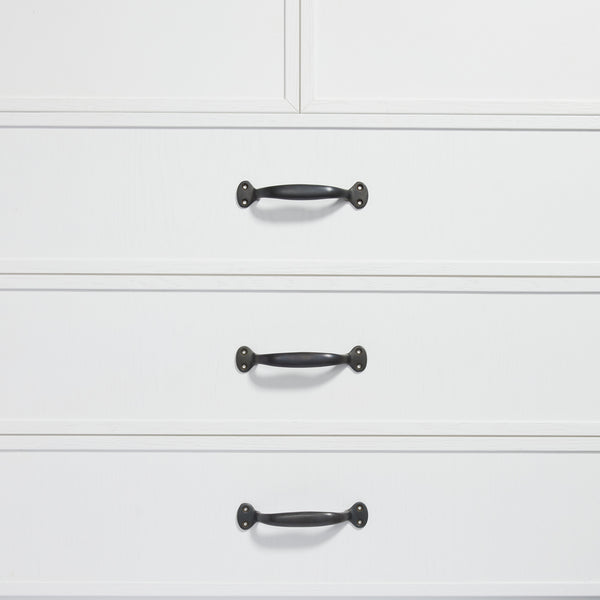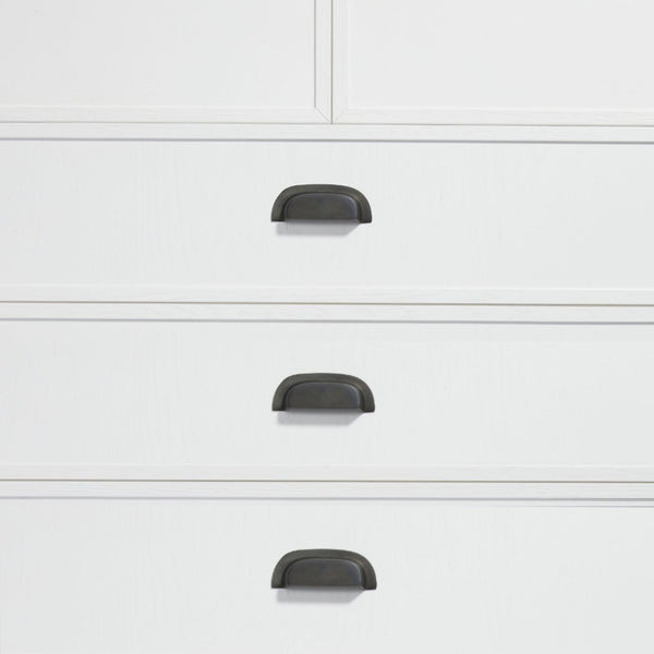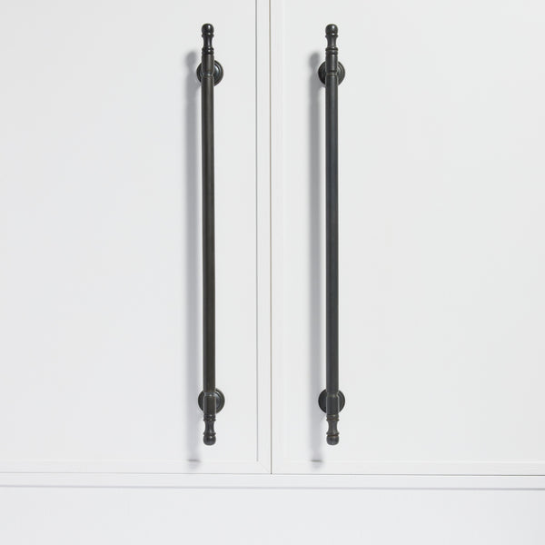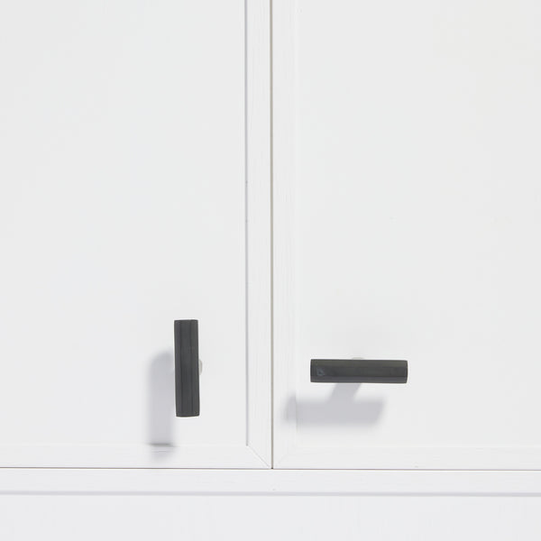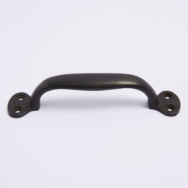 To obtain this charcoal black look, this hardware has been put in a furnace and burnt. The brass then takes on the mottled scorched black look, which will also age over time. With use the brass undertones will slowly come through where it is touched the most, giving you a unique living finish. Due to this kind of treatment, these pieces can be used in external as well as salty areas, which will only deepen the scorched brass look.