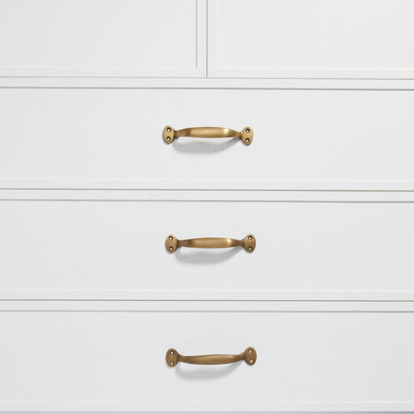 Our acid washed brass hardware has been designed to patina and evolve over time. These solid brass pieces have been given an acid wash treatment so they will beautifully age but at a much slower rate to raw brass hardware.