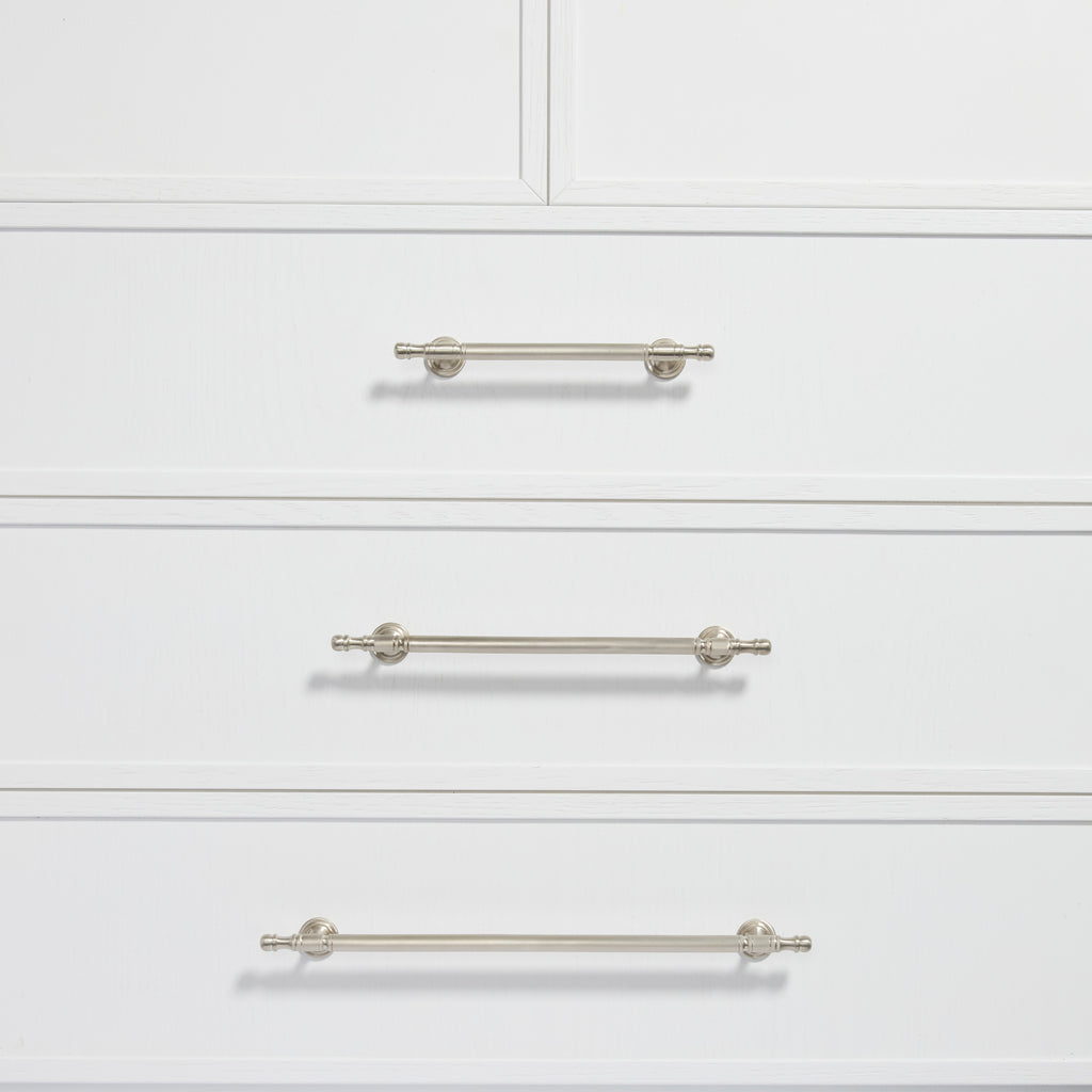 Inspired by the timeless elegance of French provincial design, these handles bring a touch of classic charm to your kitchen and bathroom. Crafted from solid brass, they feature fine rounded detailing on the ends and are designed to patina beautifully over time.